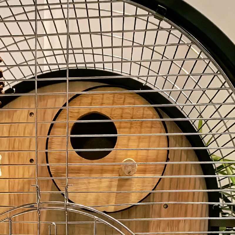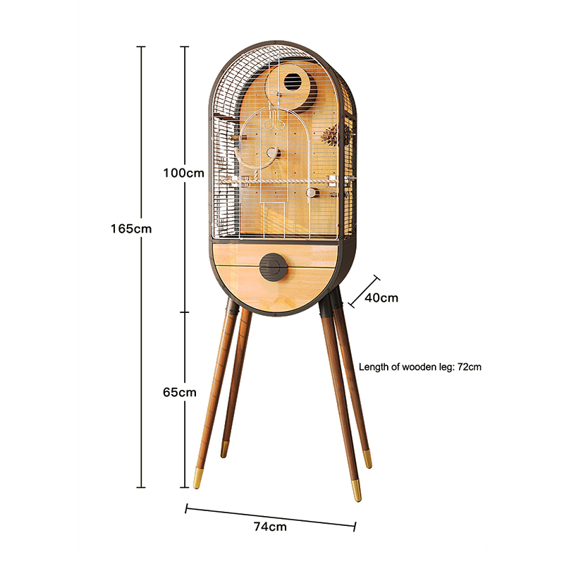 Esta jaula de pájaros de madera combina perfectamente funciones prácticas con estética ecológica, proporcionando un espacio de vida seguro e higiénico para las aves.