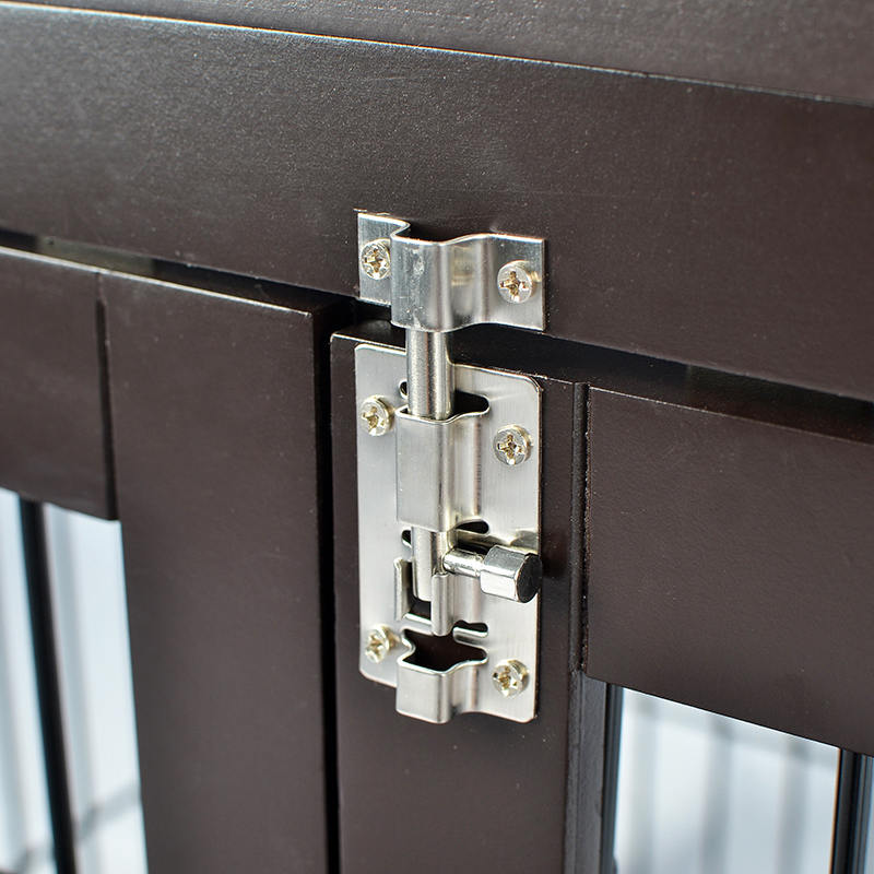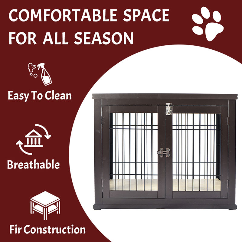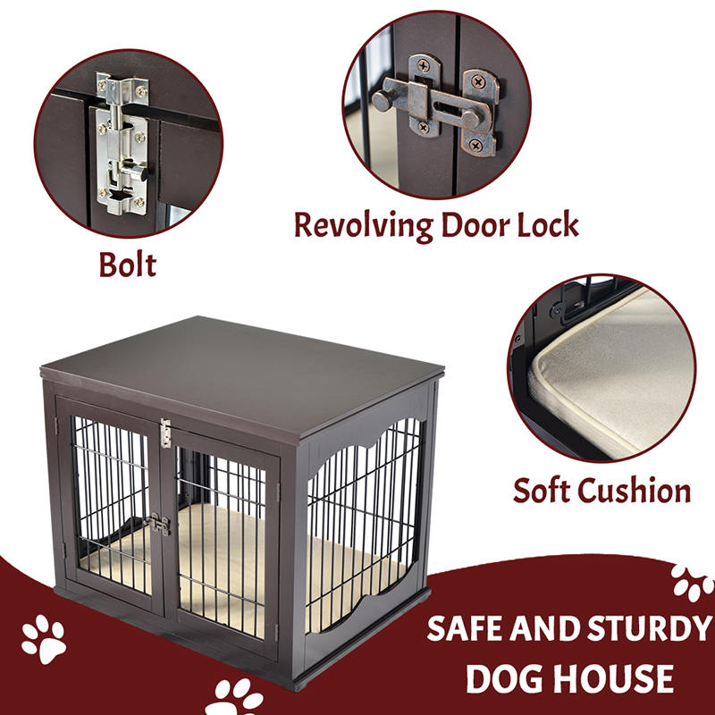1. Diseño seguro y sin preocupaciones: jaula de perros estilo muebles de madera seleccionada de alta calidad y alambre de acero bajo en carbono, con cerraduras de puerta de seguridad dobles, protección general de la seguridad de las mascotas.