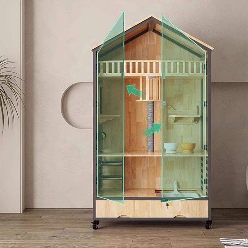 1. Materiales de alta calidad: la estructura de la casa de gato de madera es acero al carbono de vidrio templado de madera de goma